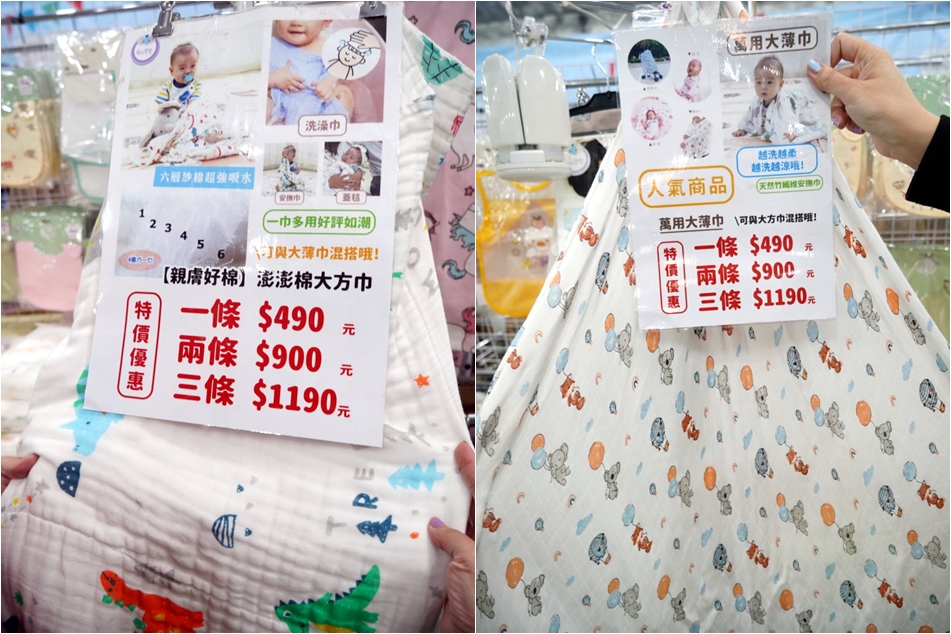 ▼大方巾、大薄巾任選一條490元、二條900元、三條1190元,當然要努力湊好湊滿才划算啊!大薄巾也是超級熱賣款,現場也有展示,大家可以實際摸摸看,就能感受到跟一般市面上買的有什麼不一樣!!澎澎棉大方巾(尺寸105 x 105公分),這款同樣吸力超強,輕輕擦過就非常乾爽,很適合當作小朋友洗澡用的包巾,之前一直是缺貨中的狀態,這場難得有貨,大家一定要趕緊搶購!