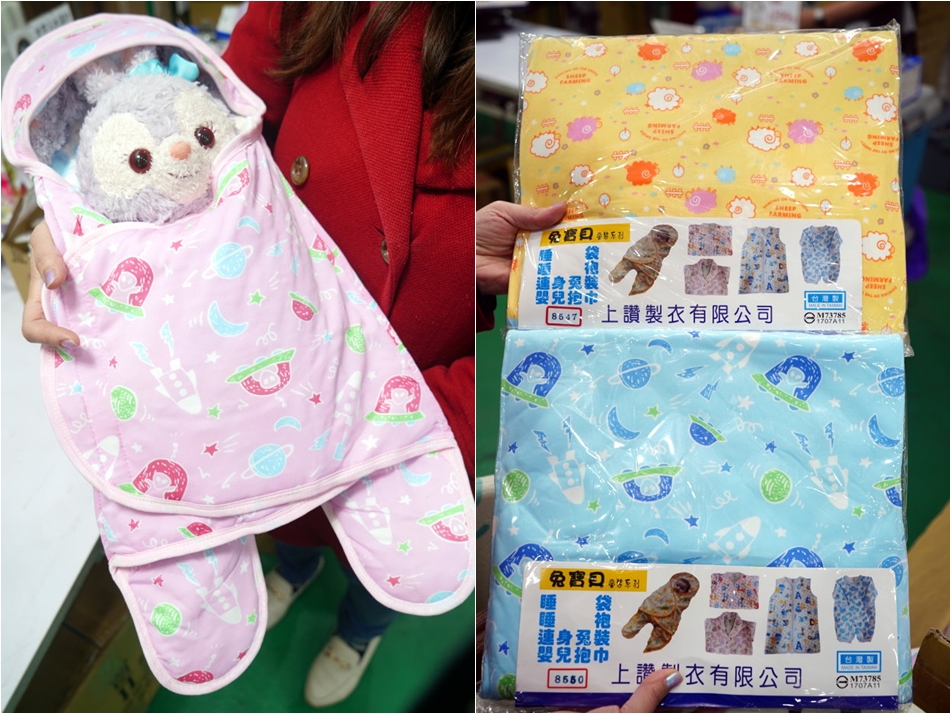▼嬰兒抱巾從頭到腳包緊緊,方便又保暖,現場還有三種顏色可選,每條只要290元很可以。