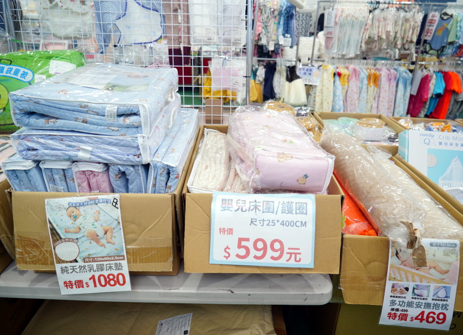 ▼嬰兒床用七件組原價2000多,現在特價990元很超值;另外像是寢具、床墊、睡袋、安撫枕通通有,來一趟就能一次買齊。