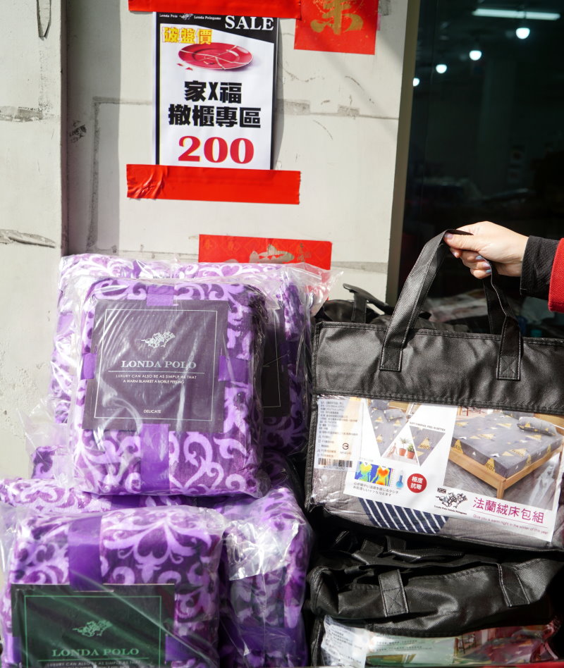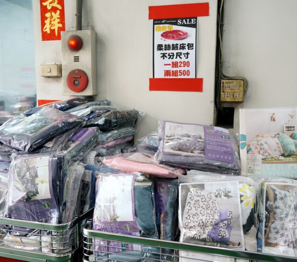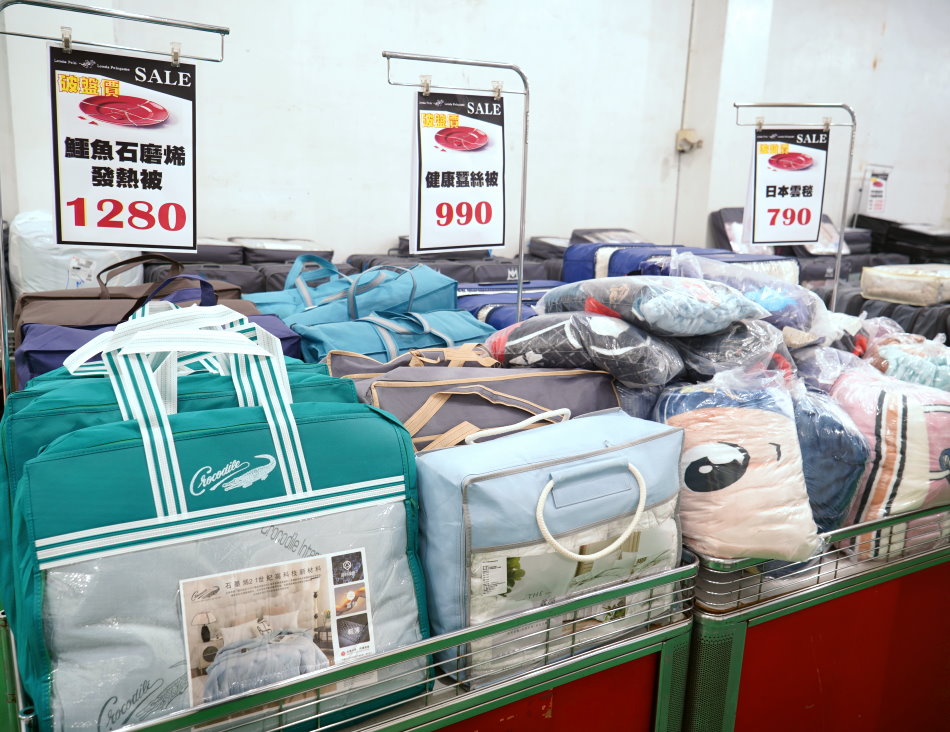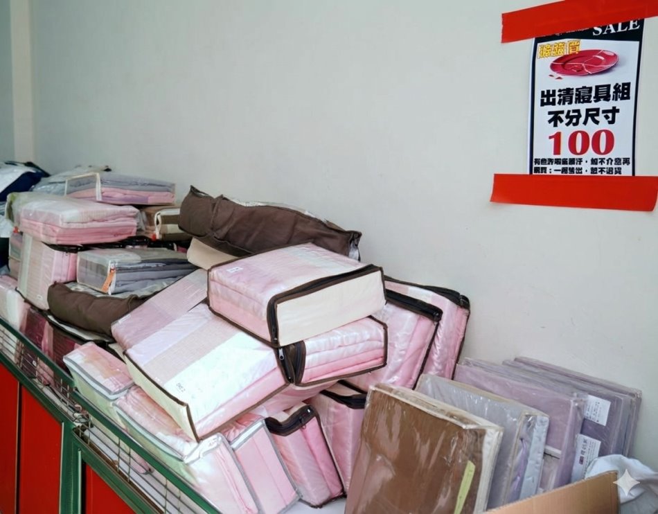 ▼這裡有枕套、床包組等多元寢具組,有些微髒污或小瑕疵,每件只要100元,不介意的朋友可以來搶便宜。