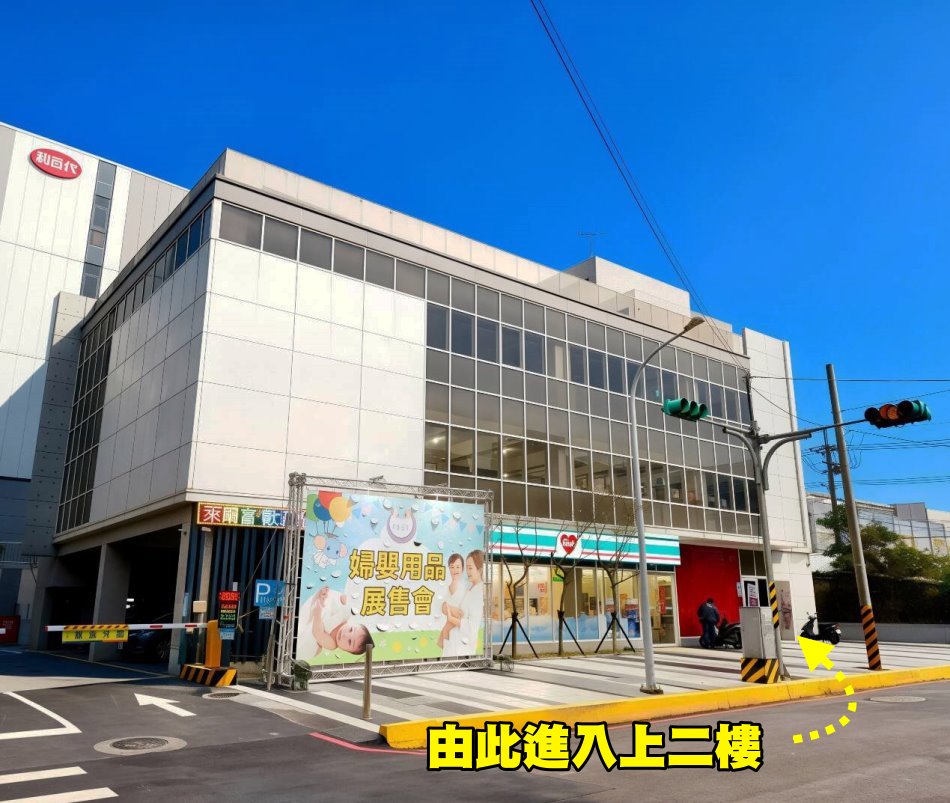 ▼「晴天寶寶婦嬰用品特賣會」位於桃園平鎮萊爾富平鎮百代店2樓,要去特賣會的朋友從右手邊側門入內搭電梯上二樓即可。
