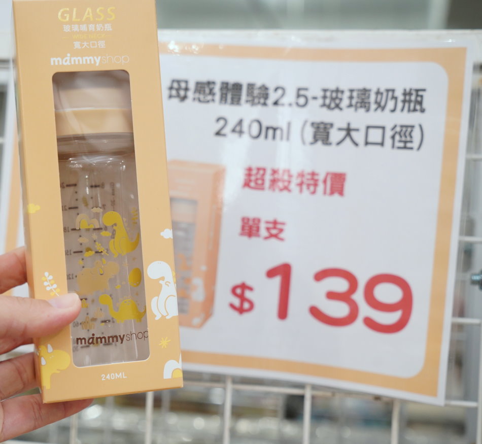 ▼媽咪小站寬大口徑玻璃奶瓶原價360元、特價只要139元,真的是超殺價無誤。
