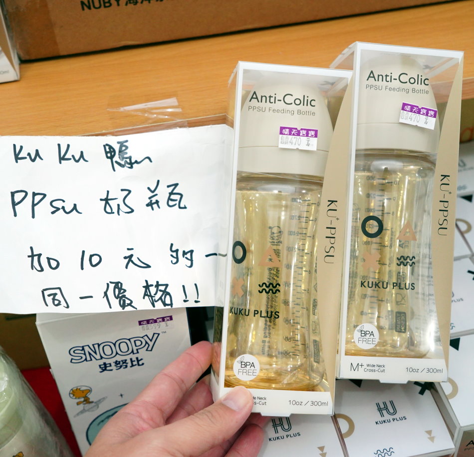 ▼KUKU PPSU 寬口奶瓶加10元多一支,可說是打到骨折不誇張,帶出門使用輕盈又方便。