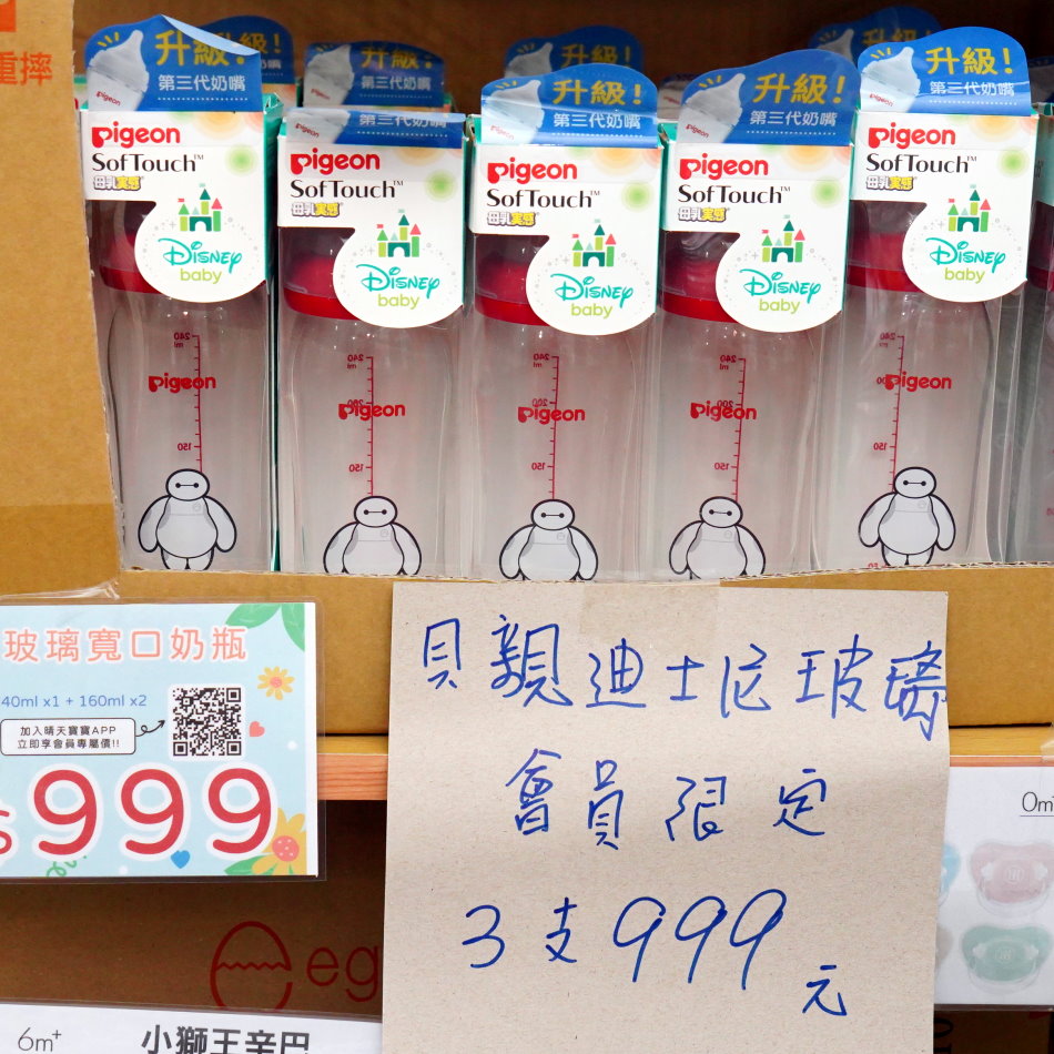 ▼貝親迪士尼玻璃寬口奶瓶獨家優惠,只要加入晴天寶寶APP會員就能享專屬折扣,任選3支只要999元,真的很超值啊!(每人限購一次)