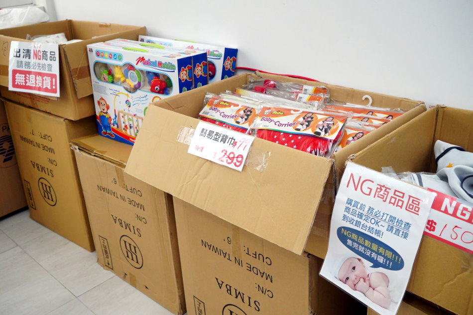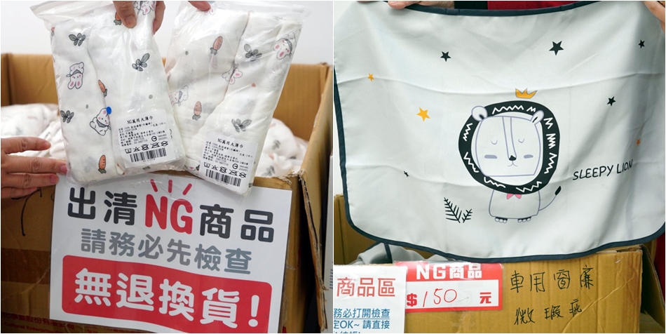▼NG商品區,很多商品都是有點小瑕疵或是線頭、髒污等,但不影響使用,結帳前一定要檢查清楚,確認可以接受再購買唷!