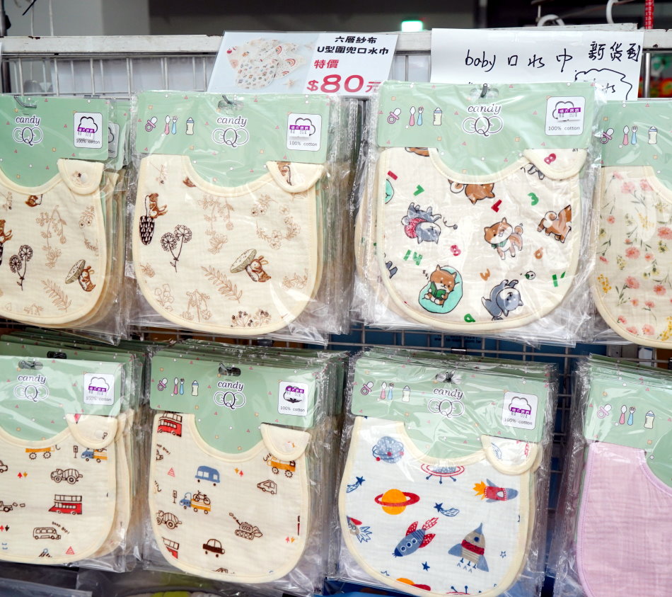 ▼質感超好的口水巾任選兩條150元,圖案選擇也相當多元。
