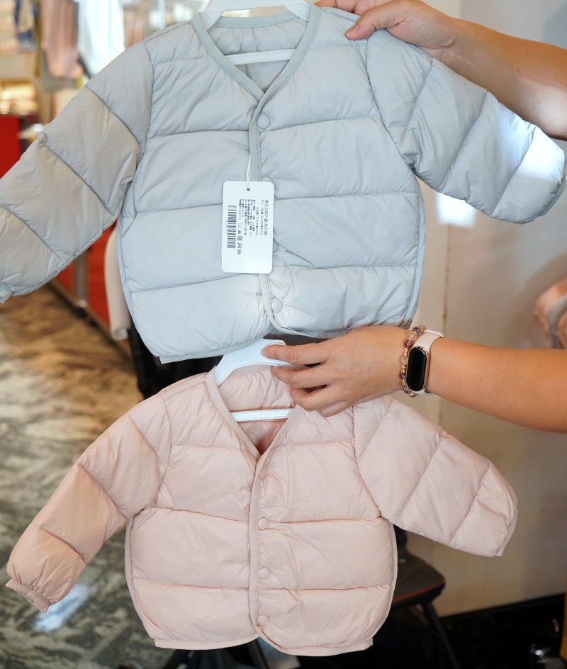 ▼新推出的羽絨外套粉嫩又可愛,裡頭有85%的鴨絨,扣子造型外頭也很少見,一件只要790元。
