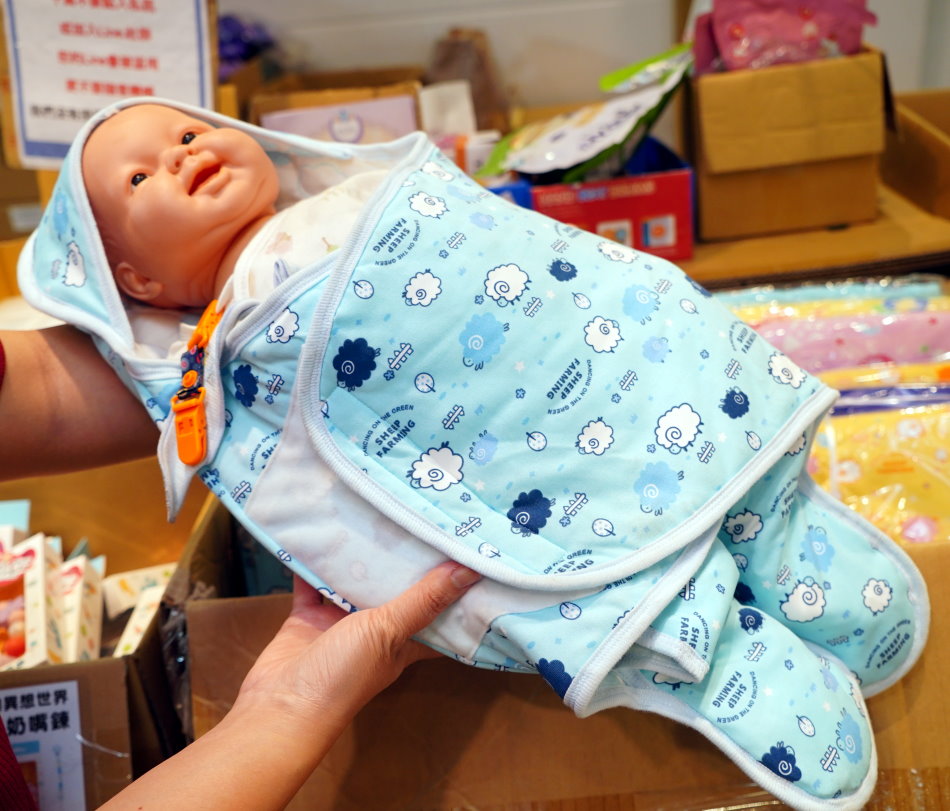 ▼嬰兒抱巾從頭到腳包緊緊,方便又保暖,現場還有三種顏色可選,每條只要290元很可以。