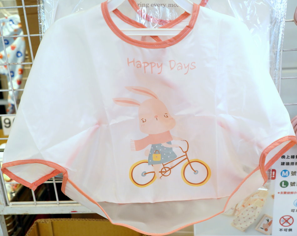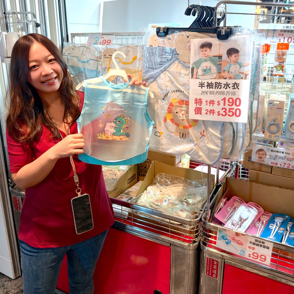 ▼最新推出的防水圍兜兜,很適合吃飯使用,就不用擔心小朋友吃到全身都是又好清理,一個才99元很划算,也是這裡的熱銷產品。另外還有半袖防水衣,任選一件190元、兩件350元。