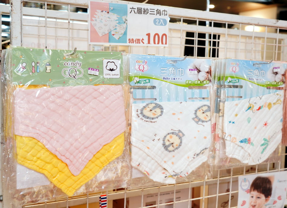 ▼六層紗三角巾2條100元,可愛又能完美的接住寶貝的口水。