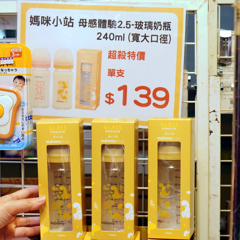▼媽咪小站寬大口徑玻璃奶瓶原價360元、特價只要139元,真的是超殺價無誤。