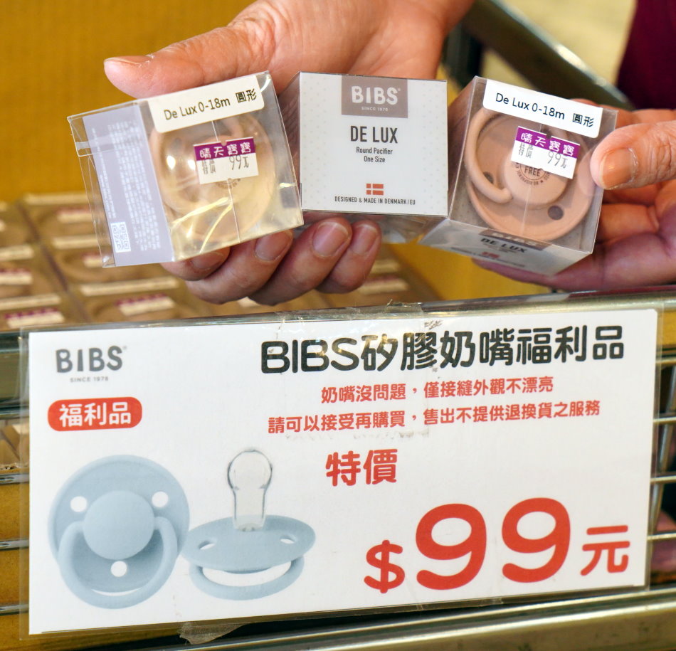▼丹麥設計品牌BIBS矽膠奶嘴福利品特價只要99元,購買前記得先檢查,可以接受再選購喔!