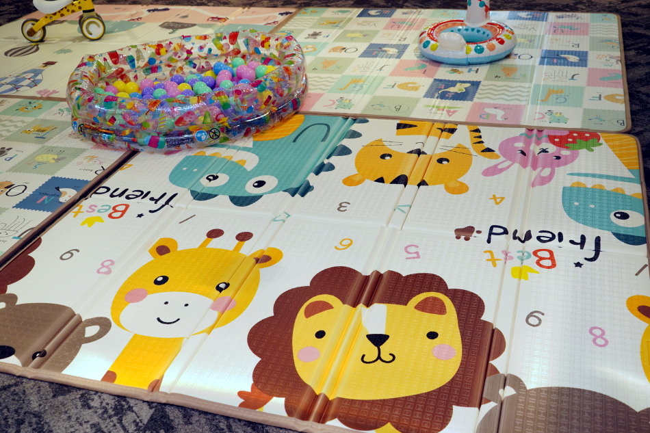 ▼這款新推出的折疊遊戲地墊是加厚款,還有經過ST安全檢測合格,不僅完全沒有塑膠臭味或異味,而且非常好收納,清潔上也很簡單,最適合鋪在地上讓小朋友玩耍唷!地墊有一定的厚度,小朋友在上頭跑跳也不太擔心會受傷~