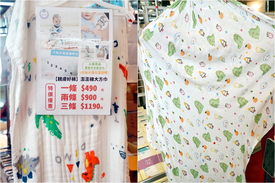 ▼大方巾、大薄巾任選一條490元、二條900元、三條1190元,當然要努力湊好湊滿才划算啊!大薄巾也是超級熱賣款,現場也有展示,大家可以實際摸摸看,就能感受到跟一般市面上買的有什麼不一樣!!澎澎棉大方巾(尺寸105 x 105公分),這款同樣吸力超強,輕輕擦過就非常乾爽,很適合當作小朋友洗澡用的包巾,之前一直是缺貨中的狀態,這場難得有貨,大家一定要趕緊搶購!