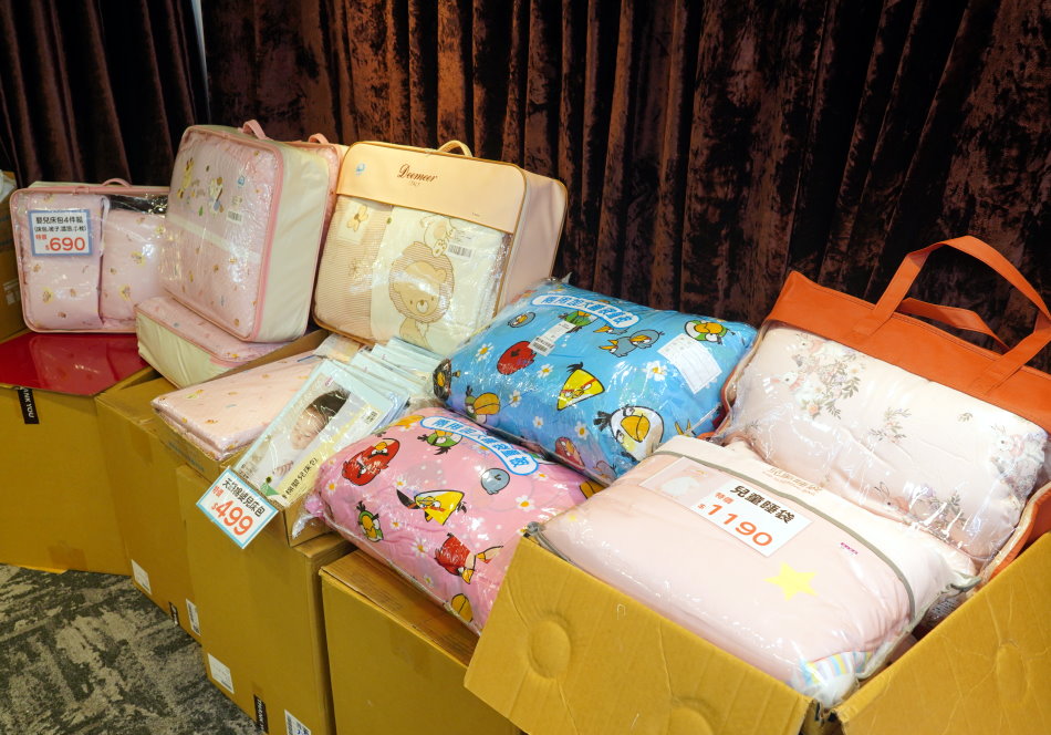 ▼嬰兒床包4件組690元,嬰兒床用七件組原價2000多,現在特價990元很超值;另外像是寢具、床墊、睡袋、安撫枕通通有,來一趟就能一次買齊。