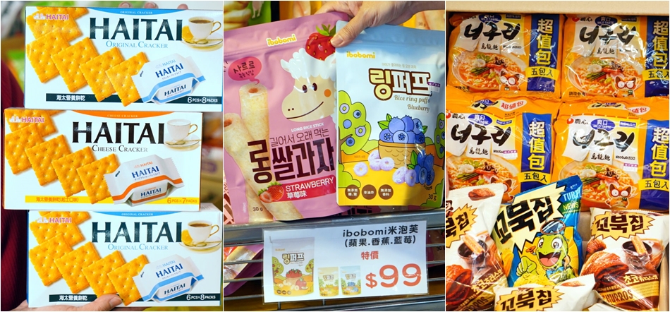 ▼海太營養餅乾都是獨立包裝,好吃又方便攜帶;另外也有多款韓國泡麵,很適合來囤一波。