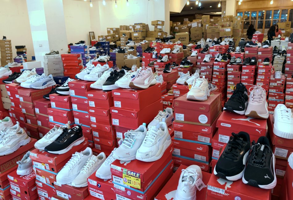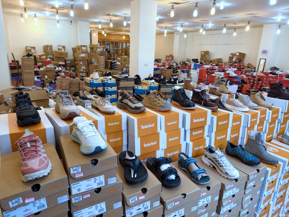 ▼現場貨源就是這麼浮誇的多,箱子疊得跟小山一樣高,而且還會再進貨,鞋款選擇真的非常多。