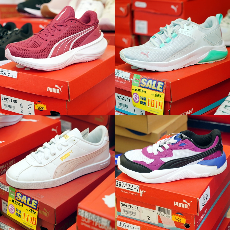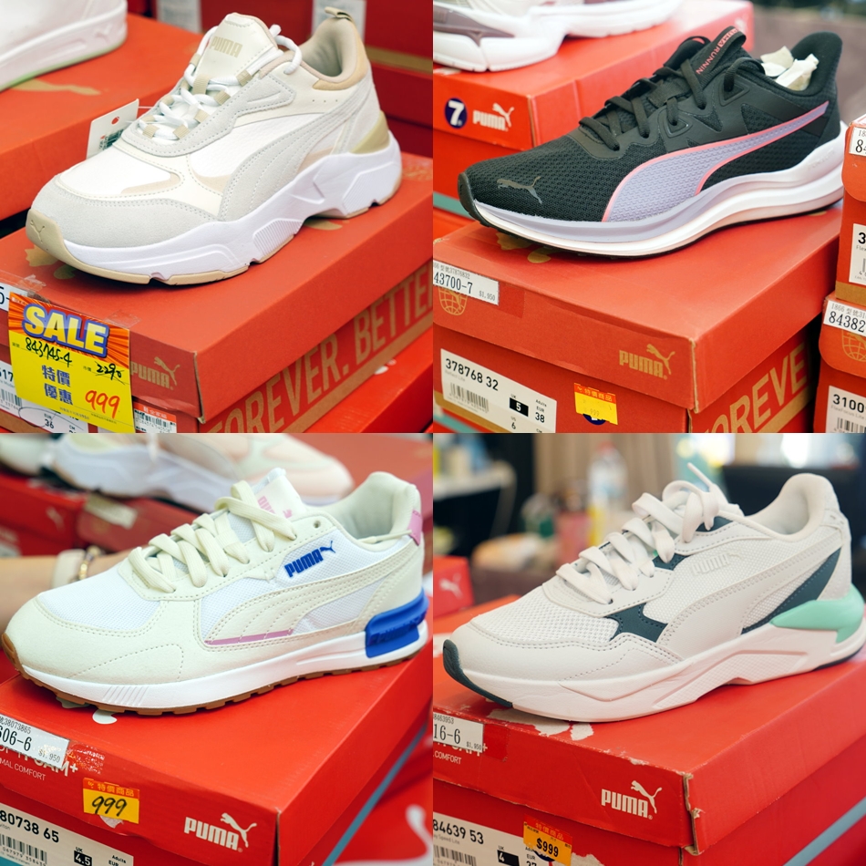 ▼PUMA是將運動機能與街頭時尚完美結合的指標品牌,這裡的鞋款選擇也相當豐富,不論是穿起來輕盈回彈的跑鞋系列,還是風靡社群、深受女孩喜愛的厚底增高系列,從專業運動到日常穿搭的各種需求一次都能滿足。當天看到不少PUMA鞋款都是999元,而且外型還是非常吸睛亮眼,買起來高貴不貴很可以。