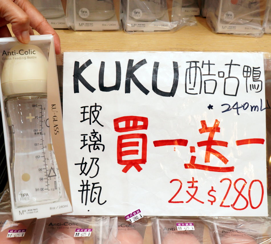 ▼KUKU玻璃奶瓶280元買一送一,平均下來一個只要140元超級划算。