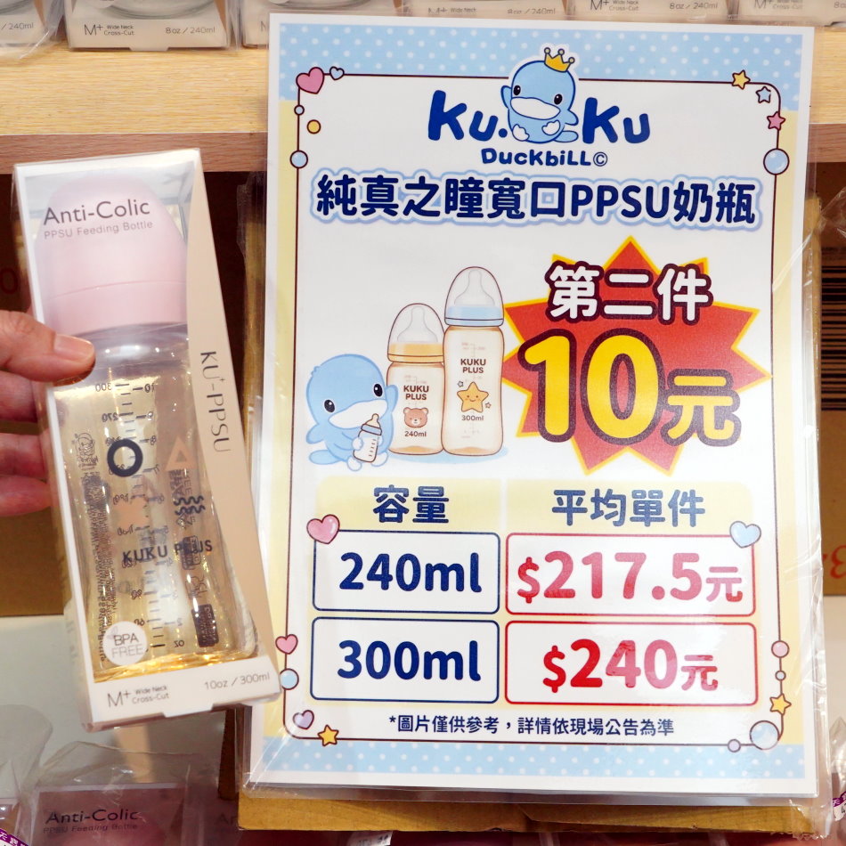 ▼KUKU PPSU 寬口奶瓶加10元多一支,可說是打到骨折不誇張,帶出門使用輕盈又方便。