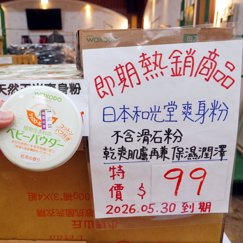 ▼日本和光堂爽身粉乾爽又保濕,而且還是獨特的紅茶香氣,聞起來好清爽,即期品特價只要99元,不介意的爸爸媽媽記得來搶便宜。