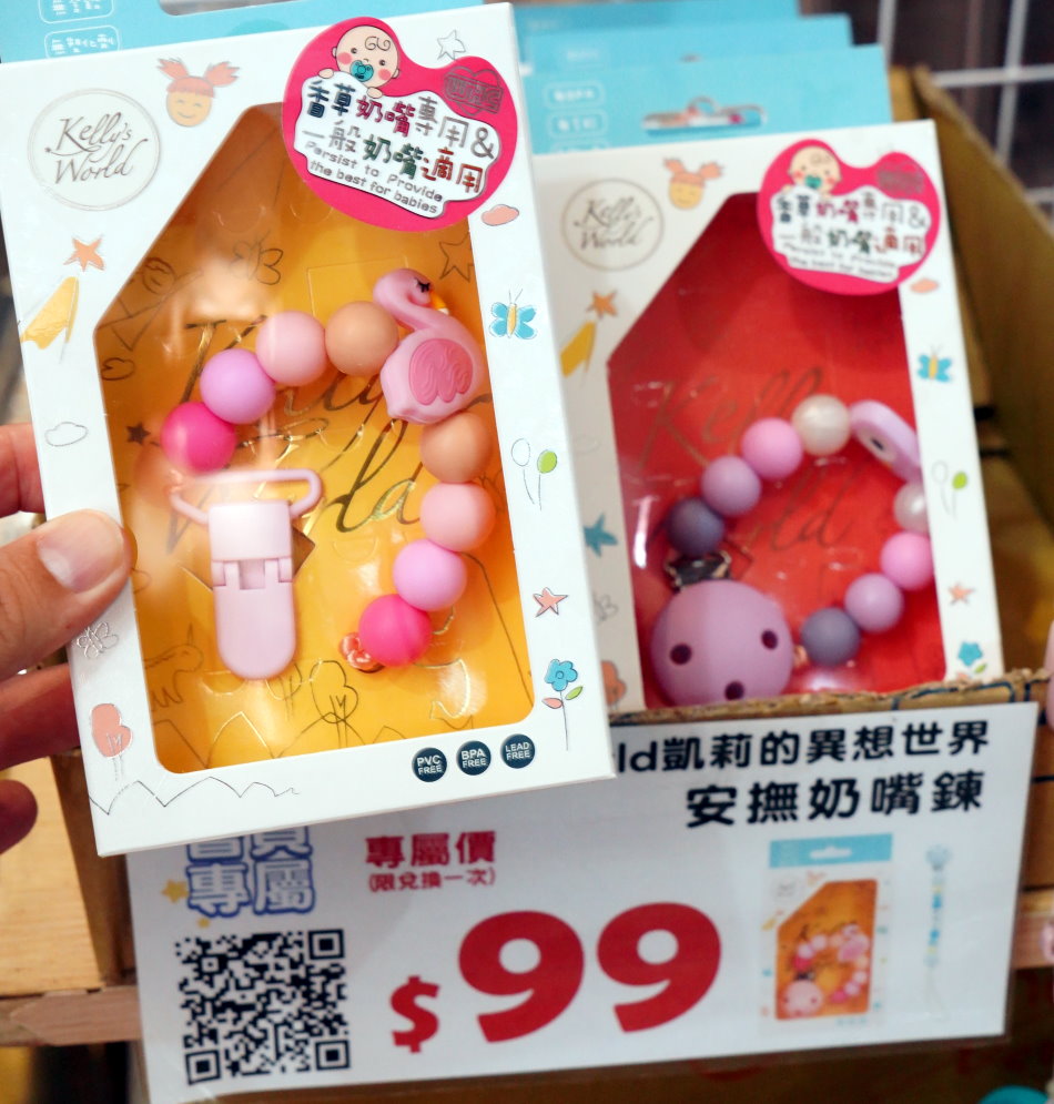 ▼安撫奶嘴鍊也太華麗了,不管是香草奶嘴或一般奶嘴都能使用,掛上去根本吊飾超可愛,會員專屬價只要99元。