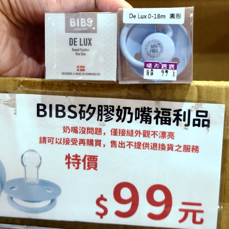 ▼丹麥設計品牌BIBS矽膠奶嘴福利品特價只要99元,購買前記得先檢查,可以接受再選購喔!