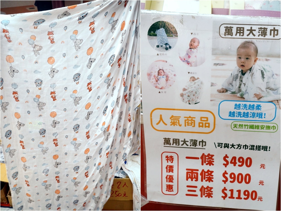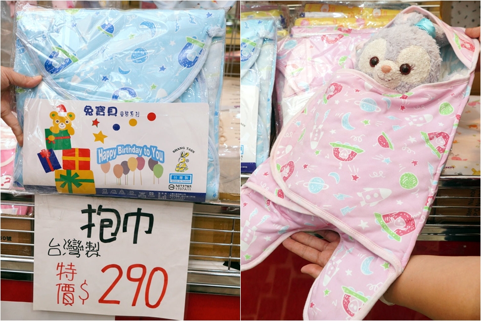 ▼嬰兒抱巾從頭到腳包緊緊,方便又保暖,現場有不同顏色可選,每條只要290元很可以。
