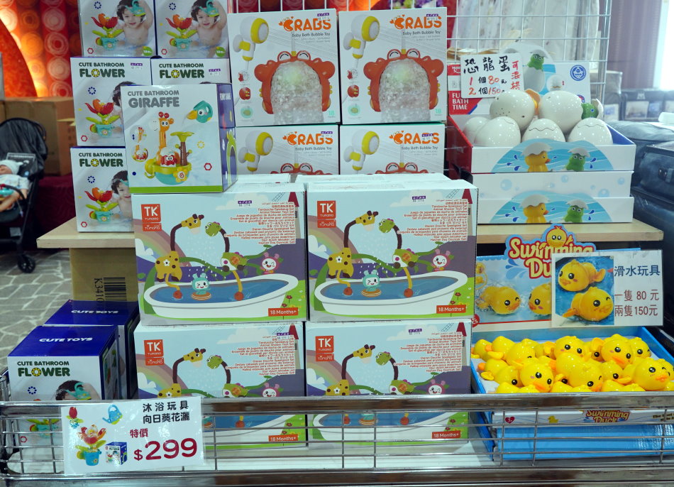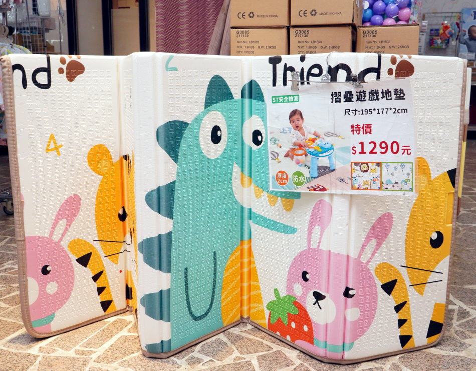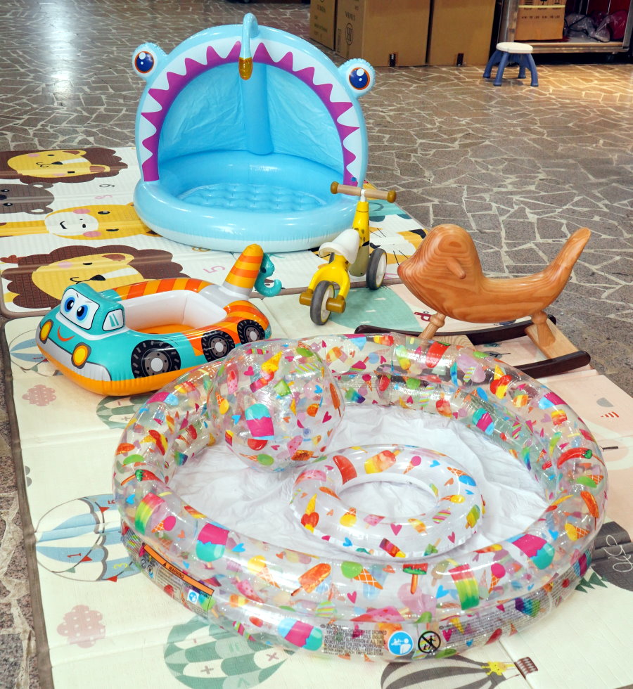 ▼用於遊戲區的雙面摺疊地墊也是超熱賣,上頭也有展示充氣泳池、玩具等,大家都可以實地感受一下!