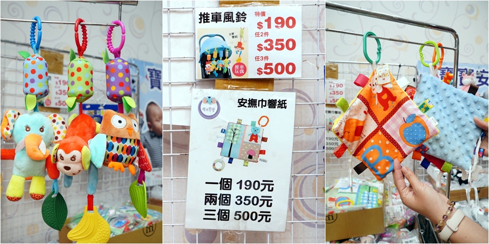 ▼推車風鈴、安撫巾響紙也是小朋友的最愛,可以邊玩邊開發視覺、聽覺跟觸覺也很棒。