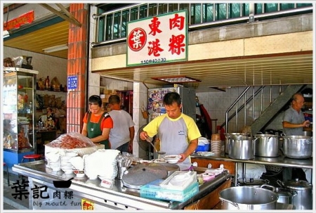「葉記肉粿」位於東港東隆國小的斜對面,開放式的店面,路邊擺上一張張的桌子(一整個很隨性啦!),