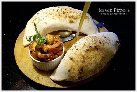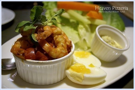 而這道有趣的餐點是「比薩球佐蕃茄辣蝦醬」230元,也是很受歡迎的一道菜,