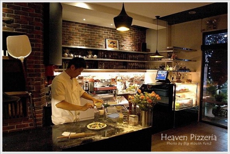 (開放式的烘烤區可以見到老闆正在準備比薩喔!)