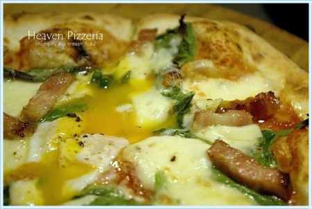 上面還有一顆被我稱之為非常「邪惡」的溫泉蛋,尤其是在比薩刀劃過去的那一瞬間……