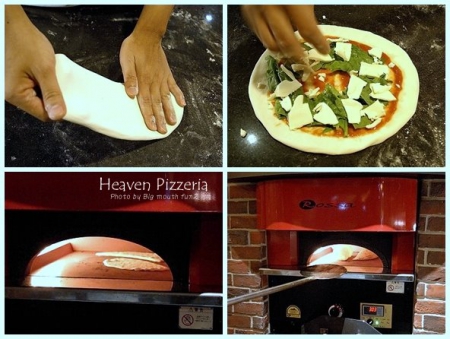 接下來是主餐的重頭戲,手工窯烤比薩正在製作中,