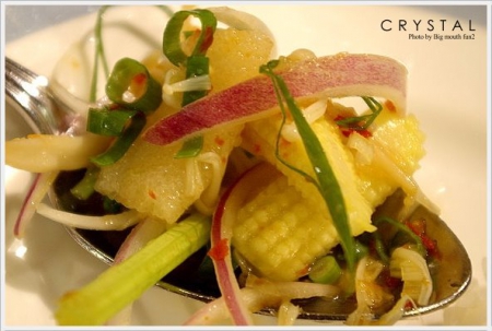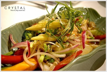 餐前菜點了「竹笙鮮蔬沙拉」250元,使用新鮮的蔬果搭配又酸又辣的泰式沙拉醬,