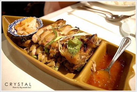 「泰式烤雞」280元,這道料理的搭配和之前的松阪豬很類似,但烤雞口味我反而比較喜歡,