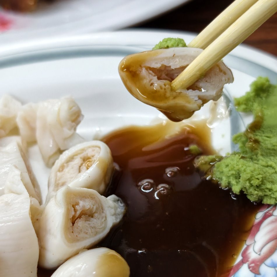 除了重口味的肉燥飯,這盤生腸也是必點!處理得非常乾淨,完全沒有異味,口感Q彈帶脆。旁邊配上大量的薑絲與特調醬油膏,再加上那一抹哇沙米,整個提味效果滿分!
