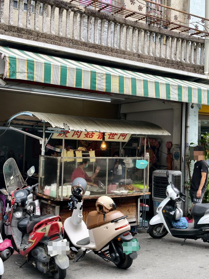 鑽進小巷,遠遠就看到這棟復古二層樓老建築,斑駁雕花陽台見證過飄香六十年的歷史痕跡。門口機車停得滿滿當當,這人氣沒話說,聞香準沒錯!