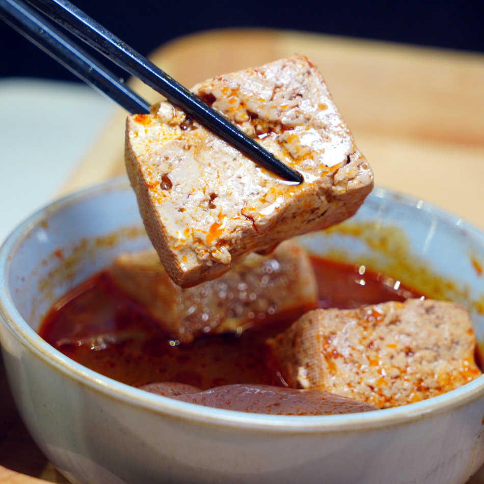 ▼豆腐吸附麻辣湯頭精華,一口咬下就能感受到濃郁的湯汁,柔嫩又麻辣的味蕾吃起來很過癮。