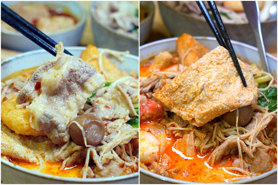 ▼豆皮、金針菇、甜不辣、三角豆腐、蟹肉棒、新竹貢丸、魚餃、牽絲起司丸、搬湯金幣、兩種時蔬等多元配料吸附湯頭精華,吃起來很夠味,尤其鳥蛋還有先行滷製過,吃起來多了滷汁香氣很可以;牛五花吃起來香嫩軟Q,搭配麻奶湯更是絕配。