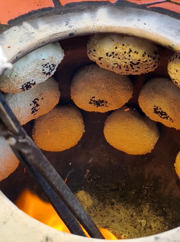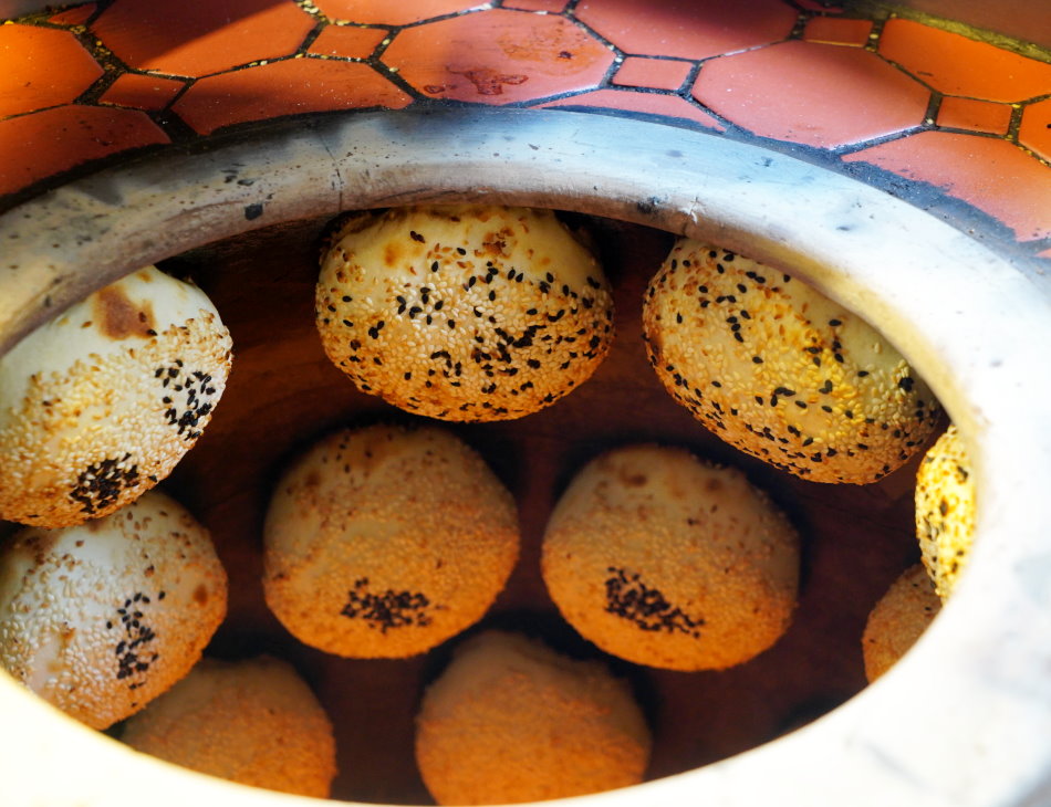 ▼製作好的胡椒餅放入炭火烤爐貼著牆壁烤,感覺炭火烤的就是特別香!