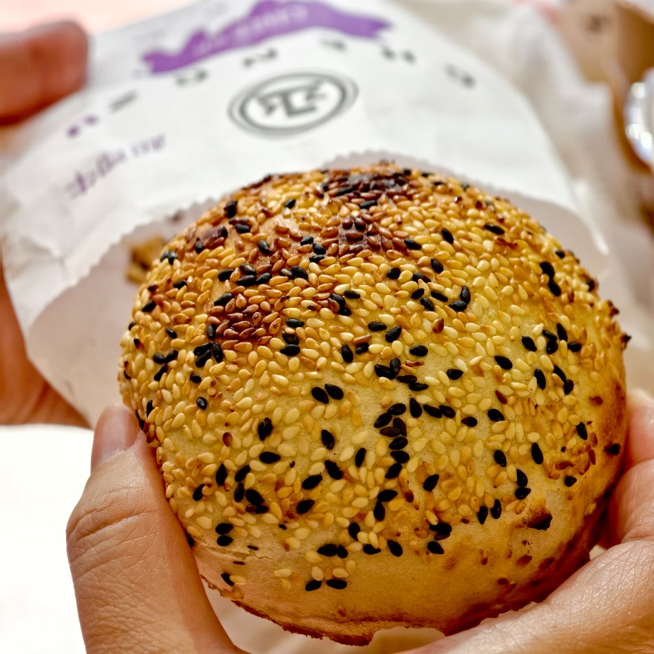 ▼上頭的芝麻不僅增添香氣,同時也可以辨別口味,剛烤好的胡椒餅就是香,圓滾滾又帶點焦脆模樣好誘人。
