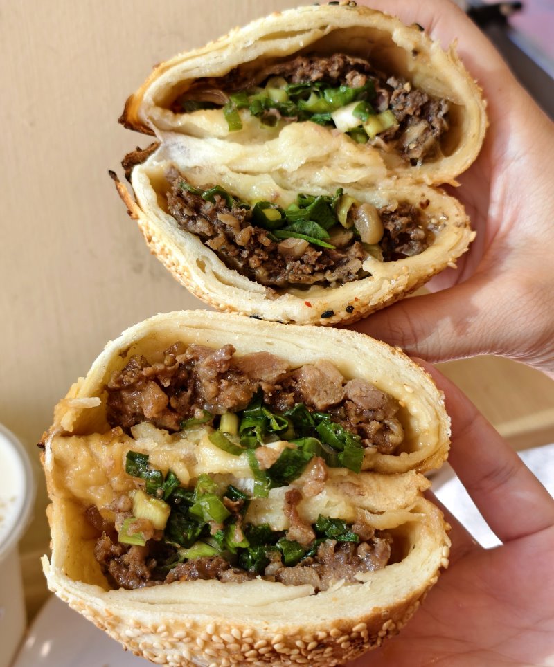 ▼這裡的胡椒餅都是當天新鮮現做,從攪拌、擀皮、秤重、包餡等過程絲毫不馬虎,手工製作的格外有溫度,而且餡料給好給滿不誇張,尤其還是採用瘦肉、絞肉結合而成的雙肉餡,搭配滿滿的蔥花或是乳酪絲,吃起來保證過癮。