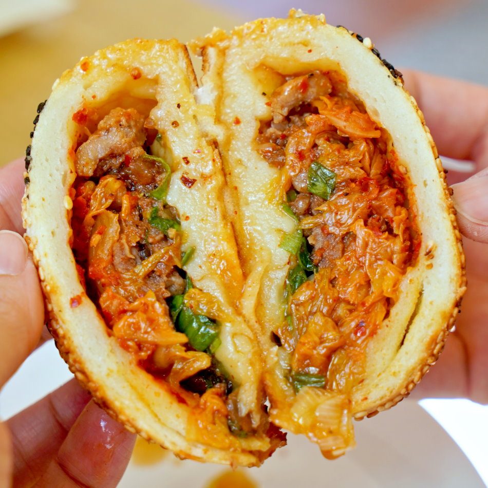 ▼泡菜豬口味的胡椒餅在外頭較為少見,不僅採用雙內餡的豬肉餡,搭配青蔥、泡菜更多了一股酸香微辣的味蕾,口感爽脆又不膩,我個人超愛這款,吃起來開胃又順口。
