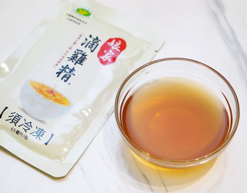 ▼熬雞精顏色金黃透亮,喝起來帶點微微豬骨香氣,有股淡雅雞湯的感覺,不過還是有一點點的腥味;不過這款有加入少許豬腩排熬製,並非由純粹的雞精製成,以營養上來看我會比較建議來源來是純雞隻優先,若以口味上來說,這款適合不喜歡雞味太重的朋友。
