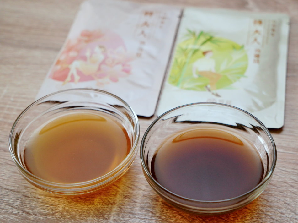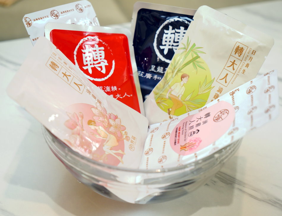 ▼這次要來PK的是市售三款轉大人滴雞精品牌,有「芳茲轉大人滴雞精(男版、女版)」、「莊廣和堂轉大人(呈龍本草萃滴精、呈鳳本草萃滴精)」、「純煉轉大人滴雞精(男版、女版)」等,每家滴雞精的包裝不太一樣,但同樣採用鋁箔袋裝,比較方便加熱飲用~轉大人滴雞精大多呈現深咖啡色,顏色有深有淺,部份看起來顏色較深,看起來有種在喝中藥的錯覺!