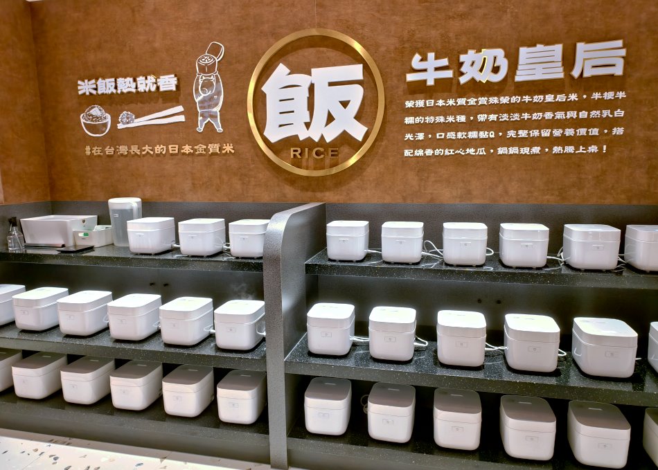▼來這裡必拍的就是這一面電鍋牆啦!!這裡的白米飯採用來自日本的牛奶皇后米,吃起來有淡淡的牛奶香氣與乳白光澤,搭配紅心地瓜香氣十足,鍋鍋現煮,熱騰上桌無限續加,最棒的就是通通讓你吃到飽,搭配幾道下飯料理,對於愛吃白飯的朋友來說簡直是天堂。