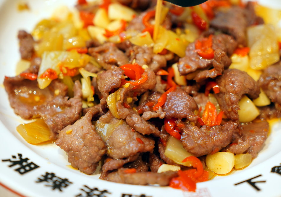 ▼這道現點現炒的18秒爆炒鮮牛肉可說是招牌餐點,有日本A5和牛前胸、嚴選極上鮮牛肉、日本F1前胸上蓋等三種不同的牛肉可以選,可以依照個人喜好、預算來點選;我們選的是嚴選極上鮮牛肉,不僅肥瘦適中、牛味厚實,搭配蒜頭、菜心、辣椒等調味更是香辣夠味。
