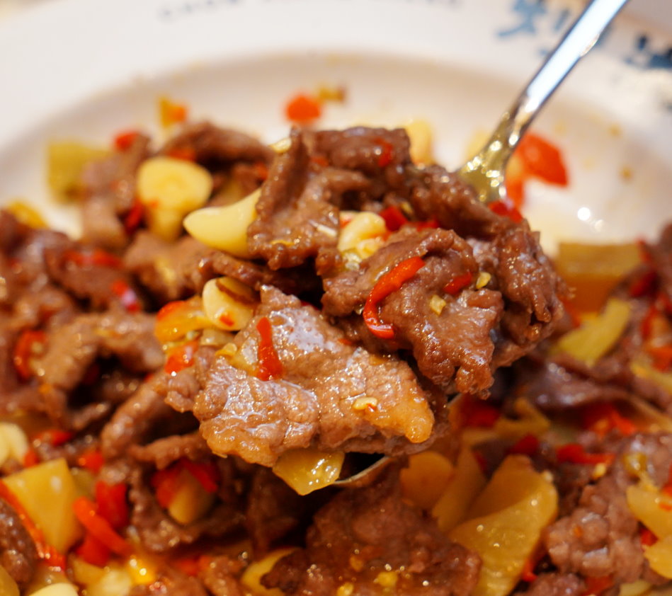 ▼牛肉吃起來鮮嫩彈Q,帶有迷人的蒜香、辣味,鹹香開胃又涮嘴,每一口都超級下飯;最棒的是這裡的辣度並不會太高,連平常只吃小辣的我們都很能接受,吃起來也不會爆汗,很適合台灣人的味蕾。